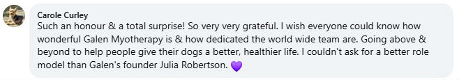 Being a Canine Myotherapist is wonderful. Being a Galen Myotherapist is extraordinary!